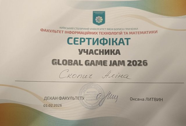 З 26 січня по 1 лютого в Університеті Грінченка відбувся Global Game Jam 2026 — найбільший міжнародний марафон із розробки ігор. Цьогоріч учасники працювали над темою Маска, створюючи ігрові проєкти з нуля всього за тиждень. Локація, організована кафедрою комп’ютерних наук, об’єднала майже 50 розробників із провідних університетів Києва та Харкова, які працювали над втіленням креативних ідей у цифровому просторі.