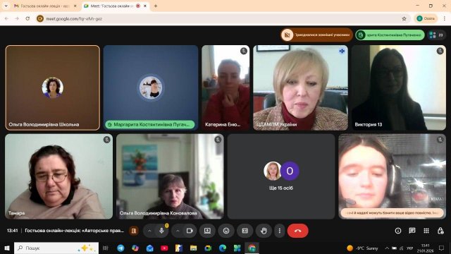 21 січня 2026 року кафедра образотворчого мистецтва Факультету образотворчого мистецтва і дизайну провела гостьову онлайн-лекцію на актуальну тему: «Авторське право в архівній практиці. Особливості роботи з мистецькою спадщиною».