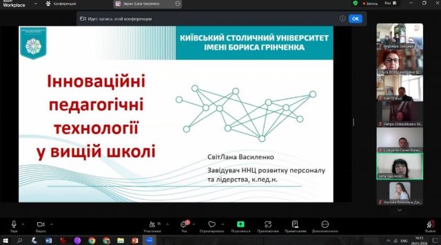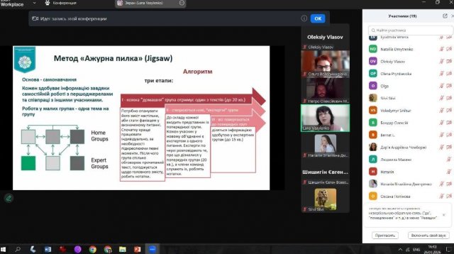 Під час онлайн-зустрічі учасники мали можливість поглибити теоретичне розуміння інтерактивного навчання, ознайомитися з сучасними інноваційними педагогічними технологіями, а також обговорити ефективні підходи до їх впровадження в освітній процес закладів вищої освіти.