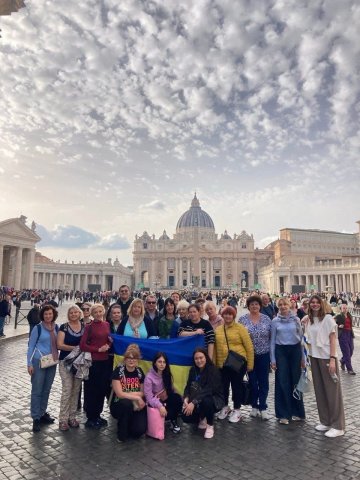 Перед входом на площу Святого Петра, багато груп з різних країн, які бачили картину українського художника, скандували «Браво, Україна!» «Молитву» занесли в Собор Святого Петра і поставили поруч з «П'єтою» Мікеланджело. Після благословення Папою всіх паломників на площі, заклику до солідарності і єднання, євангельського читання, Папі презентували картину. Розповідав про неї настоятель костелу Святого Миколая в Києві Павло Вишковський. Папа Лев ІV був вражений цією роботою, благослив картину і, через неї, всіх наших українських воїнів і весь український народ. Також Папа подарував художнику Івану Волошину Папську буллу, яка дарується в важливих і урочистих випадках! Старший викладач Наталія Полтавець давала змістовні і цікаві інтерв'ю на радіо «Ватикан», виступала в церквах, розповідаючи про українську культуру, започаткувала корисні зв'язки з українською діаспорою художників і мистецтвознавців, зустрічалася з відомими італійськими художниками.