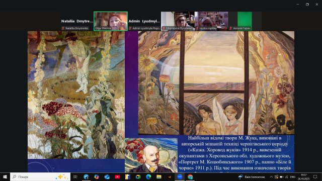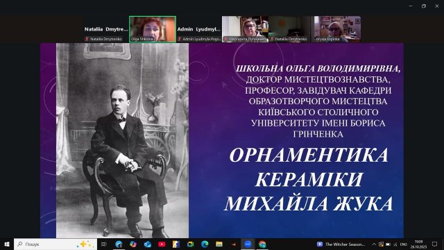 Під час лекції слухачі дізналися про творчий шлях видатного українського художника Михайла Жука (1883–1964) — живописця, графіка, письменника та майстра декоративно-прикладного мистецтва. Особливу увагу було приділено його керамічним орнаментам, у яких митець поєднував традиційні народні мотиви з модерними формами.