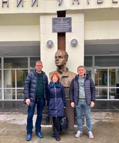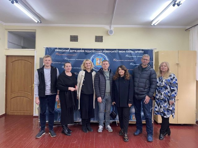 Здобувачі третього (освітньо-наукового) рівня за спеціальністю «Образотворче мистецтво» — Євген Шешигін, Олексій Бондар та Алла Руденченко, завідувач кафедри декоративного мистецтва і реставрації Факультету образотворчого мистецтва і дизайну Київського столичного університету імені Бориса Грінченка, відвідали кафедру образотворчого мистецтва Уманського національного університету.
