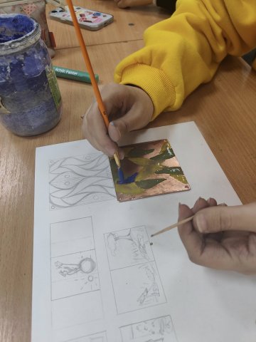 Під чітким керівництвом майстра-технолога, викладача — Резнікова Олега Вікторовича, студенти вчаться готувати металеві основи, наносити емалеві шари, експериментувати з кольором, фактурою та температурним режимом випалу.