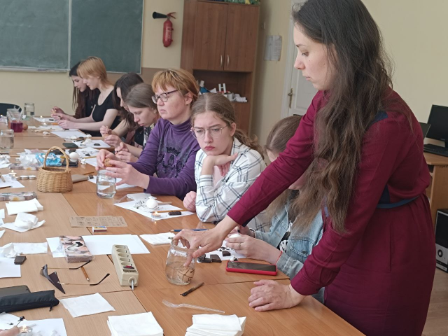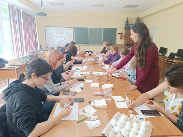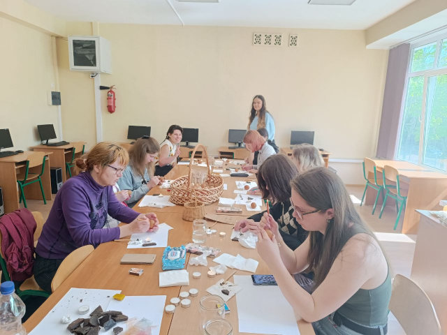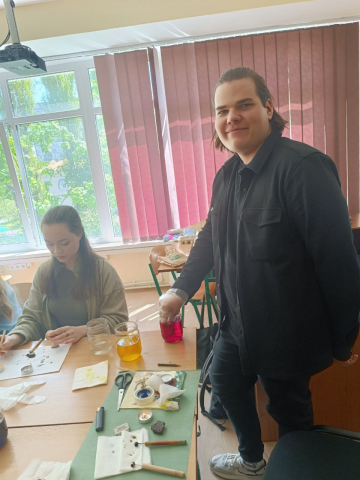 27 квітня 2024 на кафедрі дизайну відбулася передсвяткова подія. Викладач кафедри Ксенія Корокнай провела майстер-клас із писанкарства. Охочим долучитися до давніх традицій допомагали студенти 3 курсу, Олег Давидяк, Богдана Карпенюк, Аліна Скопіч. Були створені писанки як у традиційній манері, так і травлені, експеримент із техніками вийшов вдалим, сподіваємося, для присутніх цей досвід стане в нагоді в майбутньому.