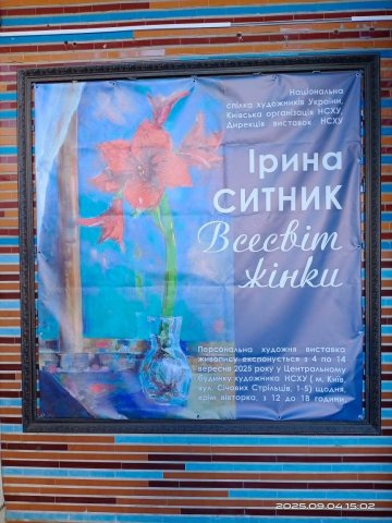 04.09.2025 згідно цілей сталого розвитку в Центральному будинку художника у м. Києві відбулося відкриття персональної виставки Ірини Ситник «Всесвіт жінки» (куратор проєкту Ірина Ситник, координатор експозиції і ведуча Карина Кравець). У виставкових залах Спілки художників України упродовж 04.09.2025 - 14.09.2025 р. було представлено понад півсотні авторських полотен, що відкривають глибину й розмаїття художнього світобачення означеної мисткині.
