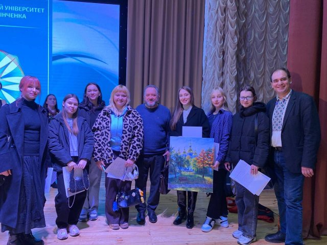 Після цього учасники відвідали творчу зустріч із видатним українським актором Богданом Бенюком — живу, натхненну розмову про мистецтво, сцену й Україну. На знак вдячності й шани артистові було подаровано картину, створену нашою талановитою здобувачкою Юлією Яцковою, — як символ єдності творчості, культури та національного духу.